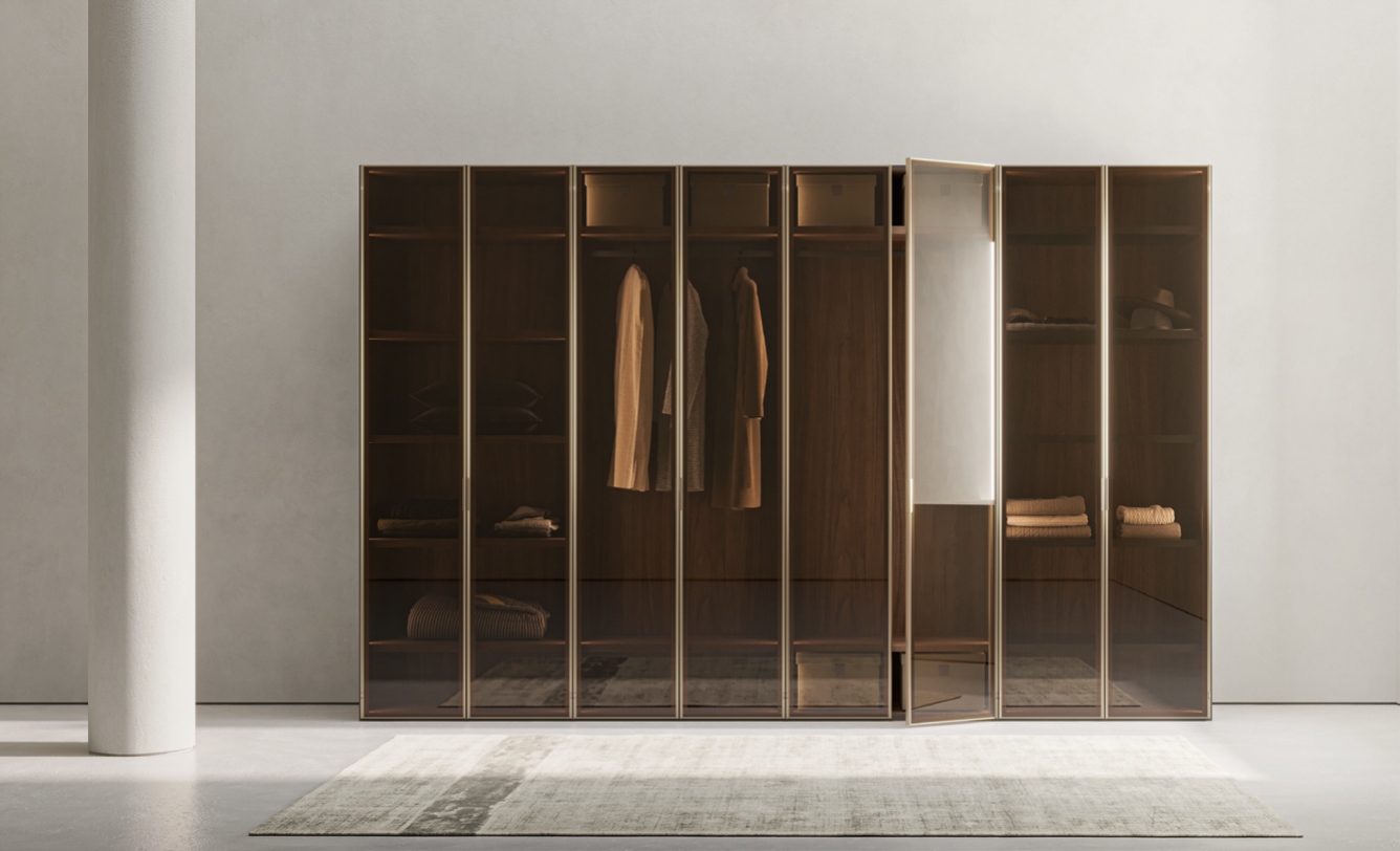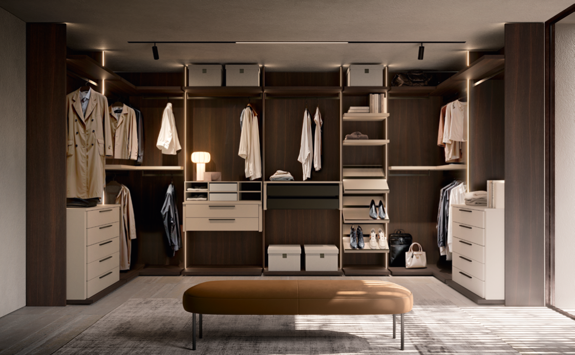Modern wardrobes for bedroom and living areas, walk-in closet, pole systems. Customization at no extra cost.